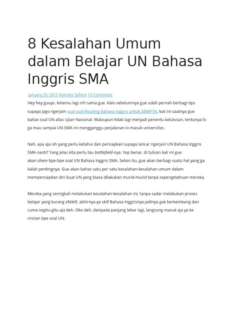 8 Kesalahan Umum Dalam Belajar Un Bahasa Inggris Sma