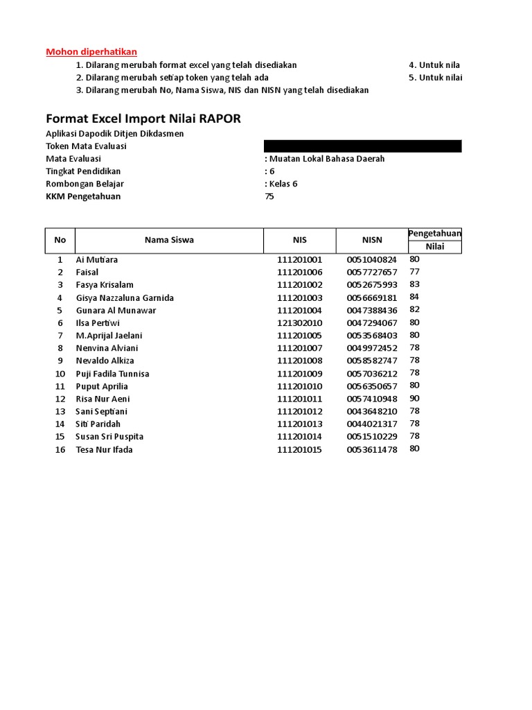 Format Nilai Rapor 20162 Kelas 6 Muatan Lokal Bahasa Daerah