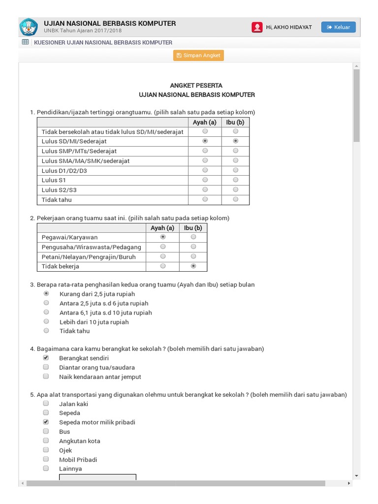 Kattejidaeng Ujian Nasional Berbasis Komputer Pengisian Angket
