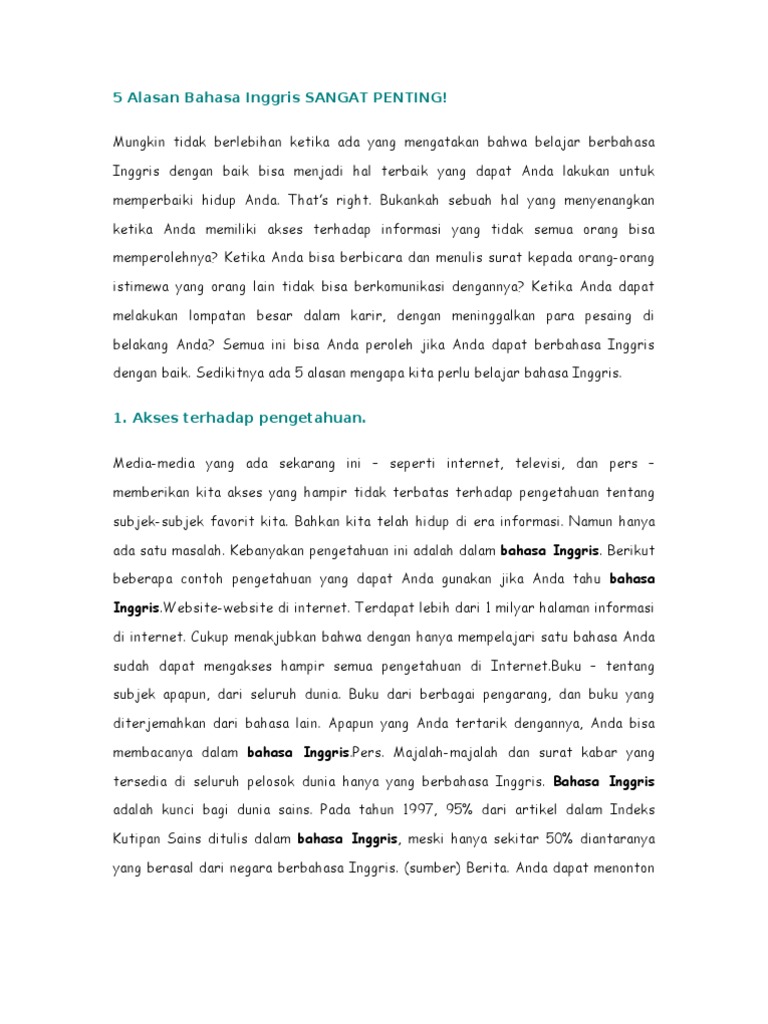 Kenapa Belajar Bahasa Inggris Itu Penting Kalimat Bahasa Inggris