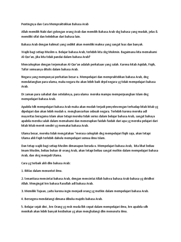 Pentingnya Dan Mempraktekkan Bahasa Arab